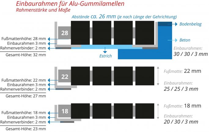 Das heißt, die Einbauhöhe ist ca. 5 mm höher als die Mattenhöhe.