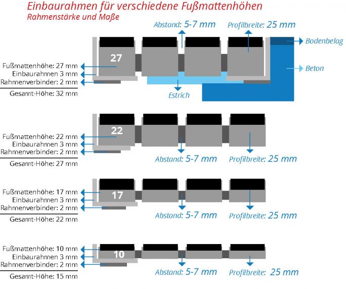 Das heißt, die Einbauhöhe ist ca. 5 mm höher als die Mattenhöhe.